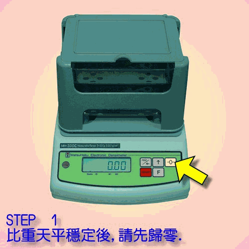 ①將待測樣品放入測量臺,測空氣中重量,按R鍵記憶